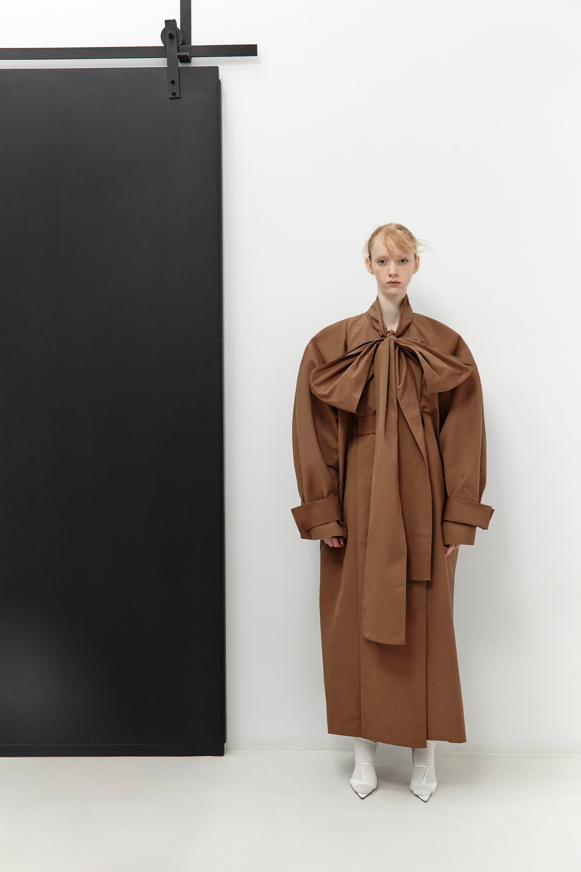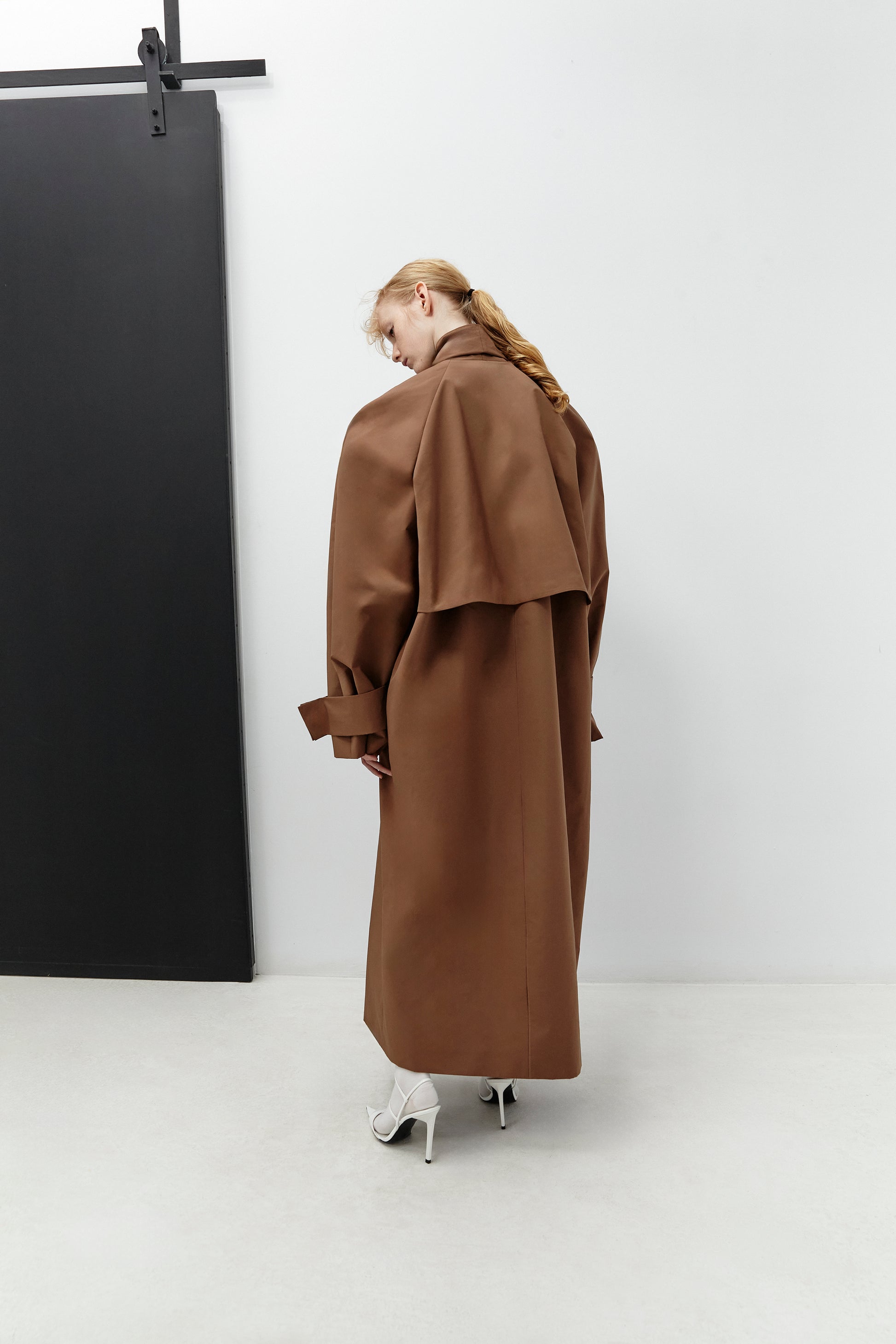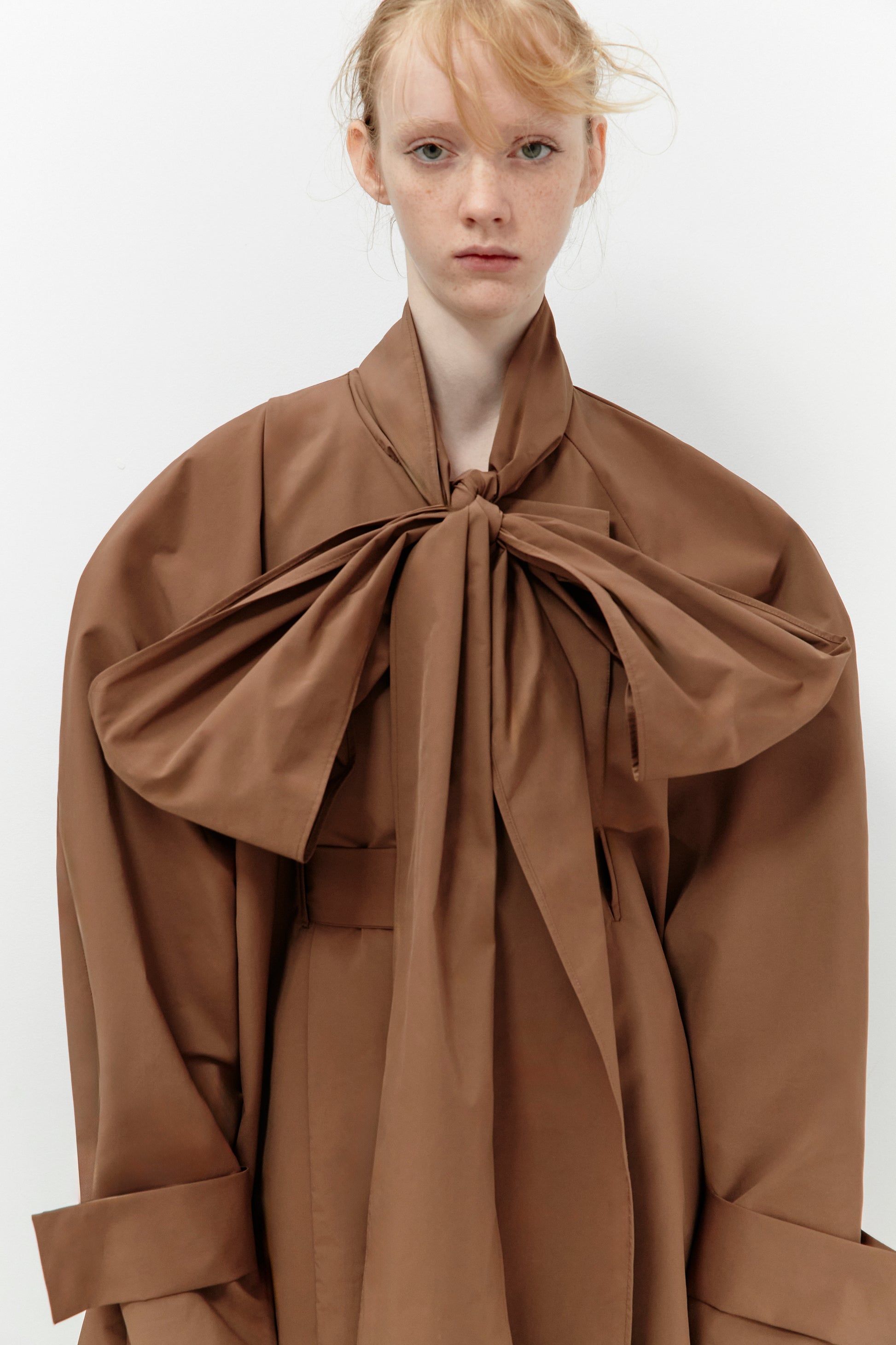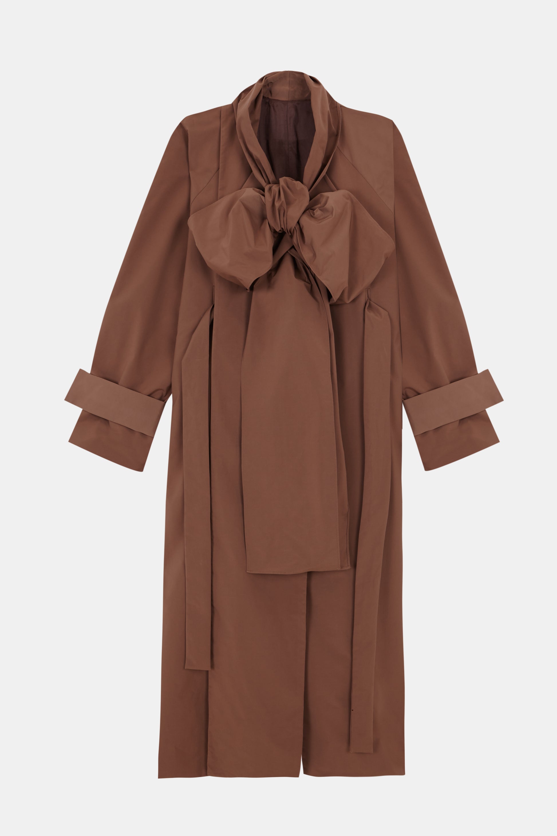 GABARDINA TECNICA CON GRAN LAZO EN EL CUELLO, DOBLE OJAL MILITAR PARA CINTURON QUE PERMITE MULTIPLES POSICIONES DE CIERRE.