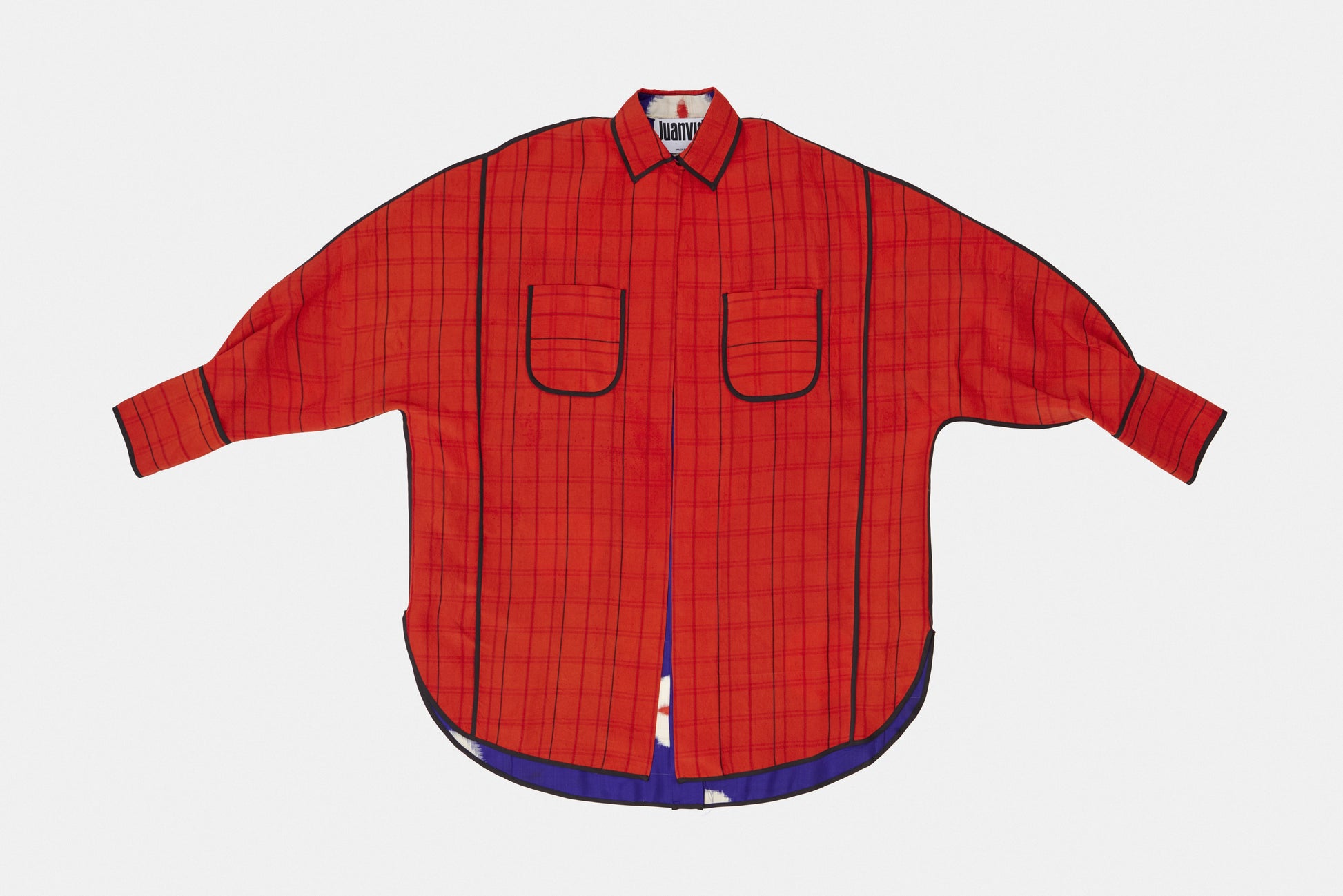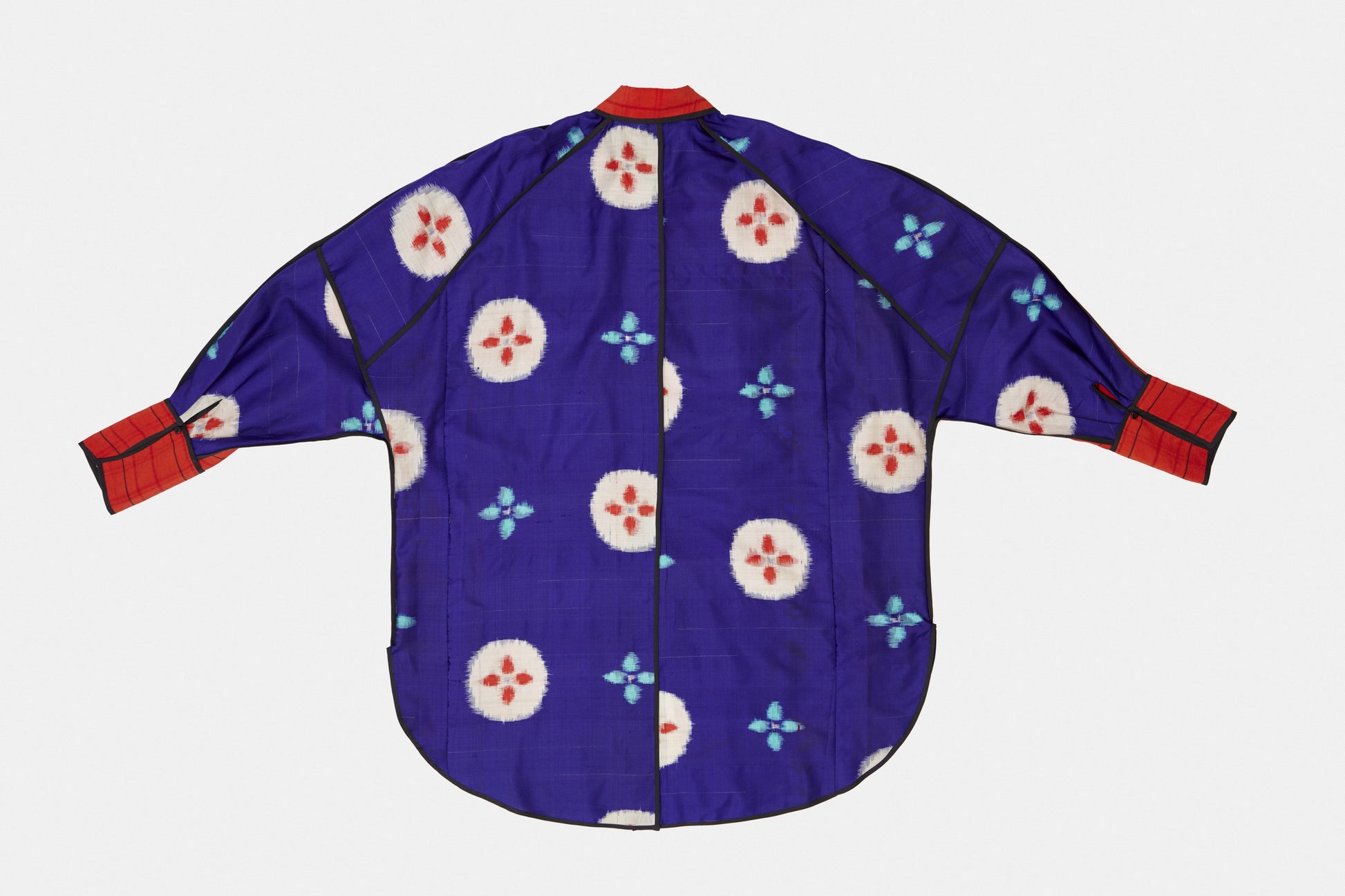 Camisa Oversized realizada a partir de paneles extraídos del desmontaje de dos kimonos antiguos, rígidos de diferentes época.