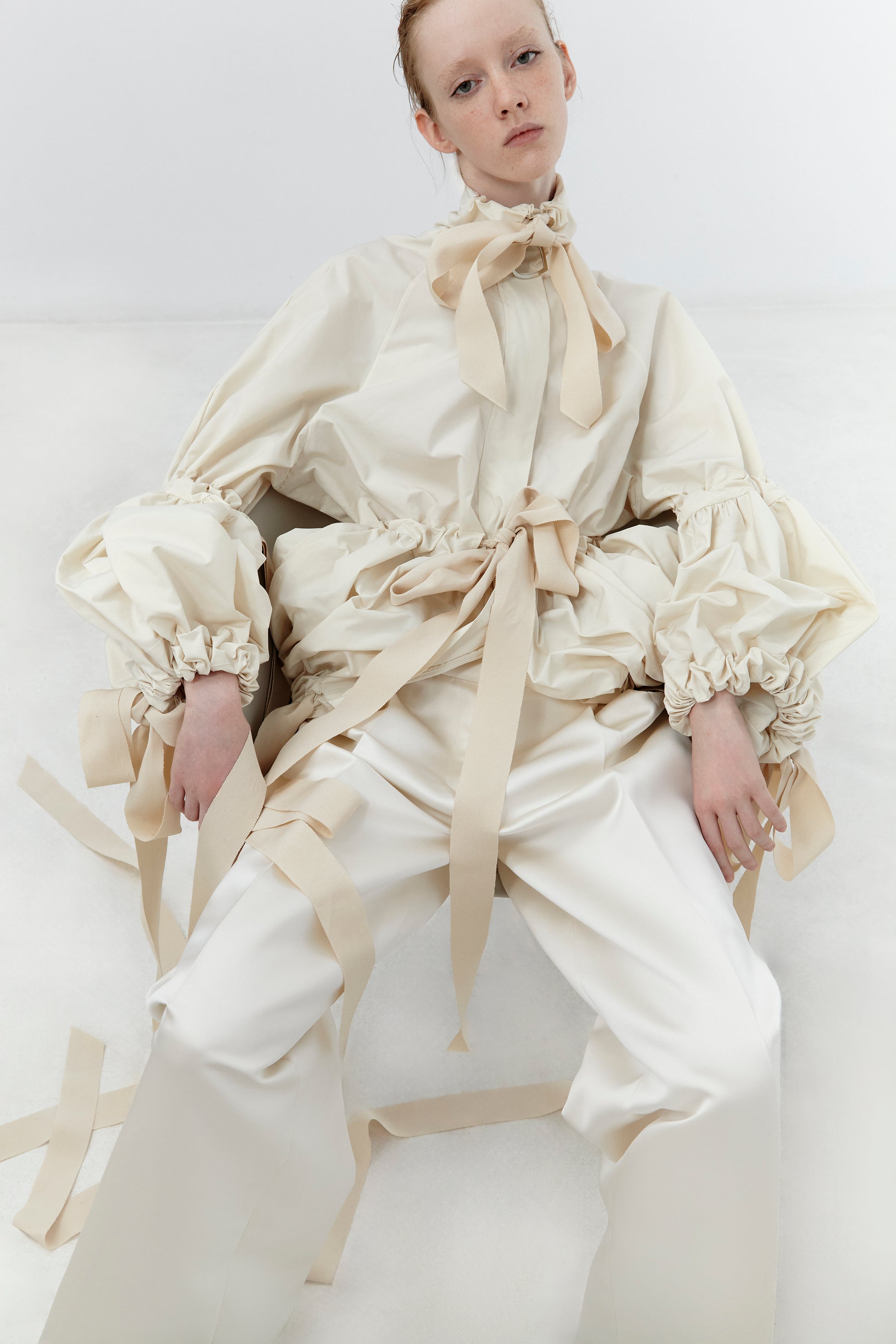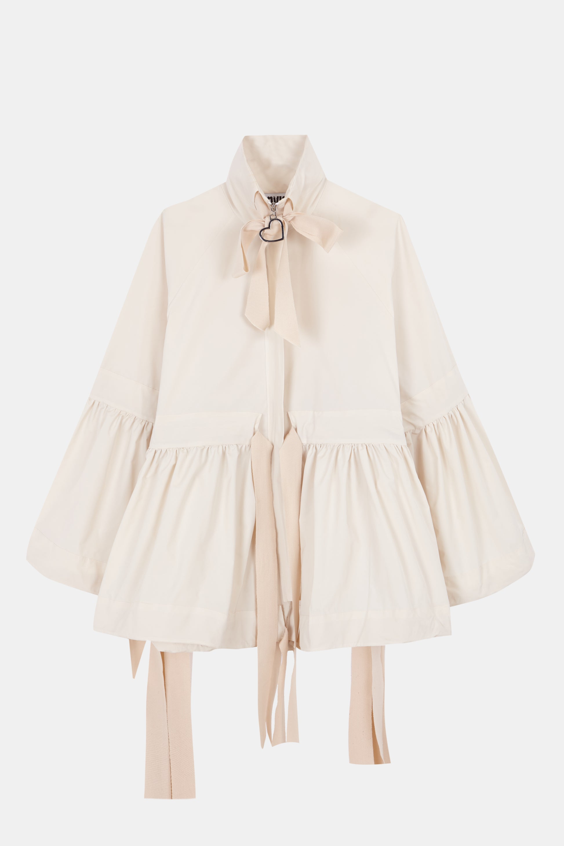 CHAQUETA AMPLIA FRUNCIDA A TRAVES DE TUNELES CON CINTAS DE GROSS-GRAIN.