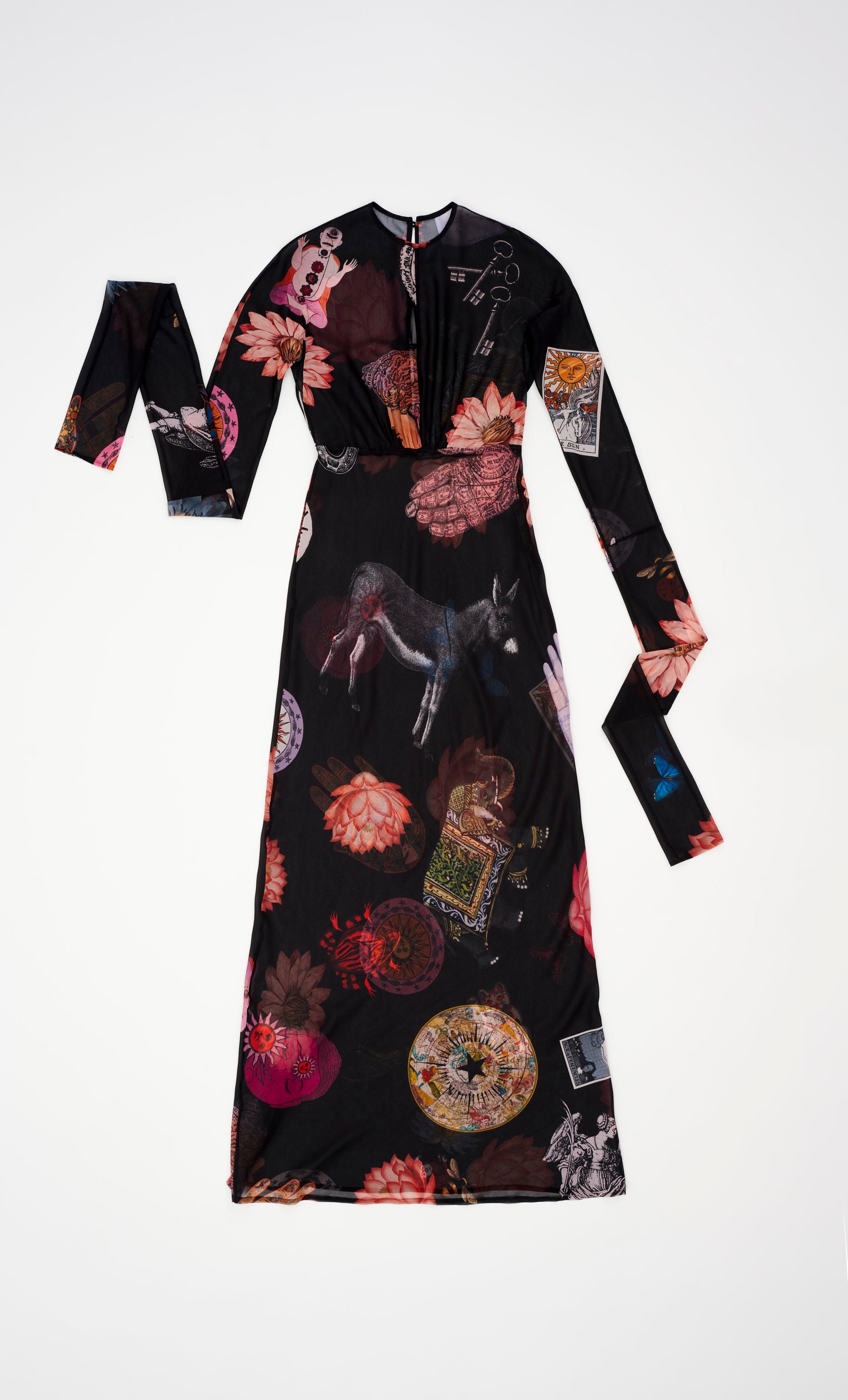 VESTIDO MAXI MANGAS TRANSPARENTES LUCKY